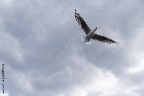Obraz premium 餌を追うカモメ(下からのアングル)