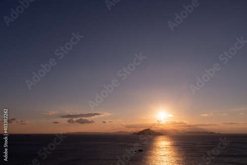 © rai, Fototapeta premium 神島沖に沈む夕日(伊良湖岬より撮影)