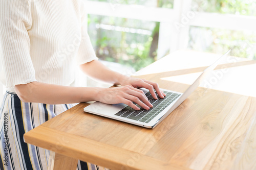 Fototapeta premium 部屋でパソコンを見る女性 手元