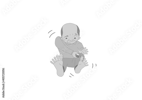 Obraz premium 足の爪を切りたい老人の白黒イラスト