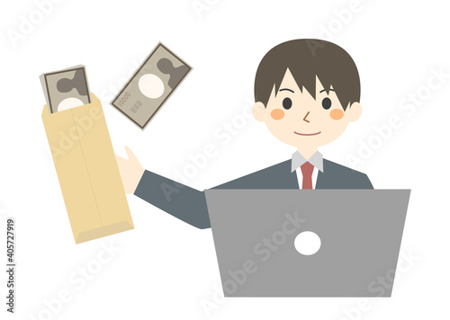 © とりがらし, Obraz premium ノートパソコン お金 副業