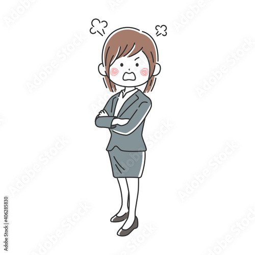 Fototapeta premium 腕組みをして怒っているビジネスウーマンのイラスト