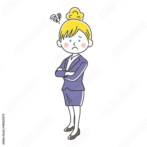 © R-DESIGN, Obraz premium 腕組みをして困っている白人ビジネスウーマンのイラスト