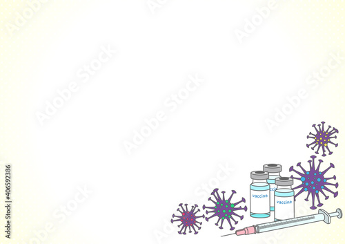 © nijin, Obraz premium ウイルスとワクチンと注射器のデザインフレーム
