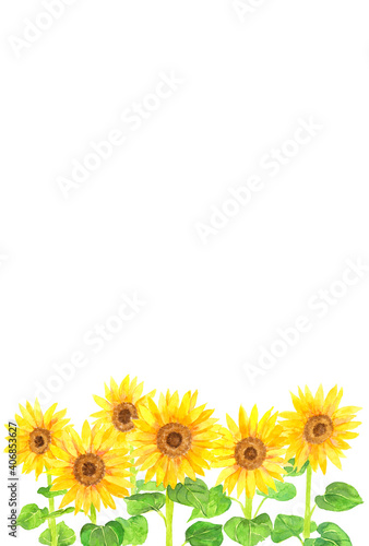 Fototapeta premium ヒマワリ 背景素材 縦 フレーム 水彩