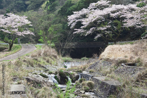 © 田村広充, Obraz premium 入来清浦ダム周辺の山あいに咲く桜