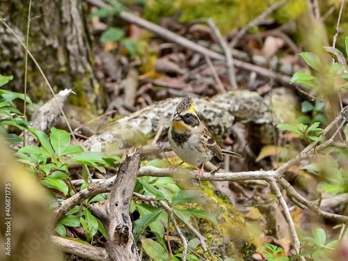 Fototapeta premium 黄色い冠羽が特徴のミヤマホオジロ オス