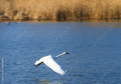 Fototapeta premium 御宝田遊水地 湖面を飛翔する白鳥
