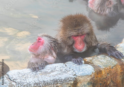 Obraz premium 寒い冬に温泉で温まるニホンザル