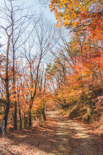 Naklejka premium 山道に咲く綺麗な紅葉の木々