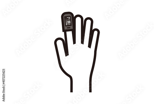 Fototapeta premium 血中酸素測定器・パルスオキシメーターを装着した人の手のイラスト
