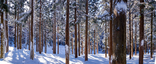 Obraz premium 雪景色の樹木 パノラマ
