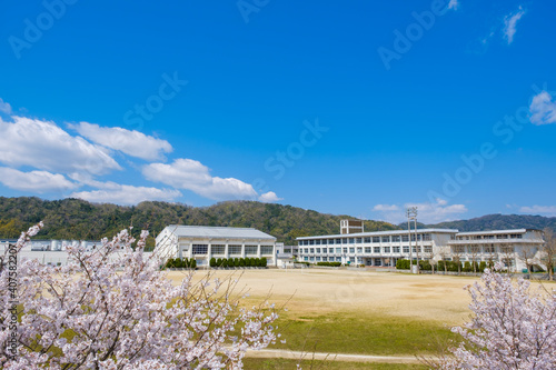 © Rummy & Rummy, Obraz premium 桜と学校 春 入学イメージ