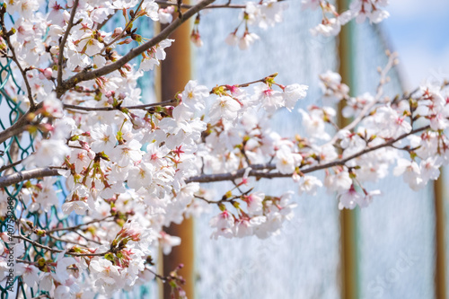 © Rummy & Rummy, Obraz premium 学校のフェンスと桜