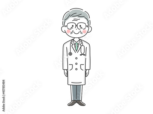 Obraz premium 白衣を着た年配の日本人男性医師のイラスト