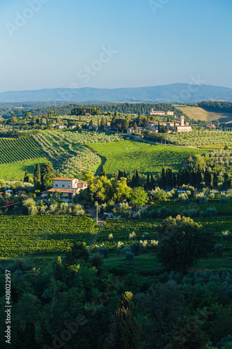 Fototapeta premium イタリア サン・ジミニャーノから見える郊外の丘陵風景
