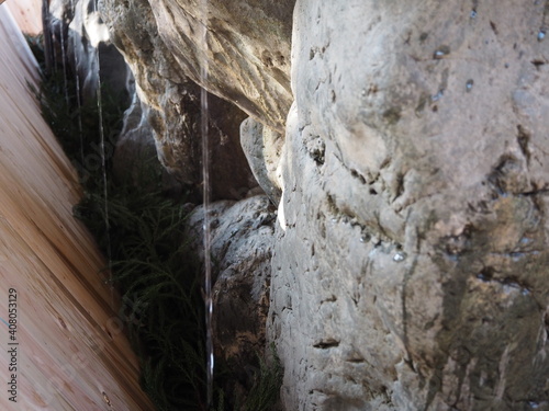 Obraz premium 感染症対策のためにひしゃくを使わない形にした神社の手水舎