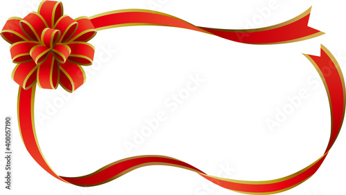 © ナナメニコ, Obraz premium 華やかなリボンフレーム四角(赤・金フチ)
