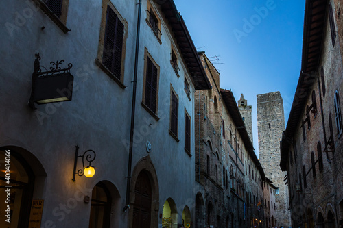 Fototapeta premium イタリア サン・ジミニャーノの路地から見えるトッレ・デイ・クニャネージ