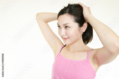 Fototapeta premium ヘアセットをしている女性