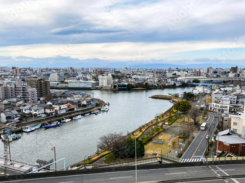 Obraz premium かつて東海道唯一の海路として栄え多くの旅人が往来した宮宿、七里の渡しの令和時代の街の風景