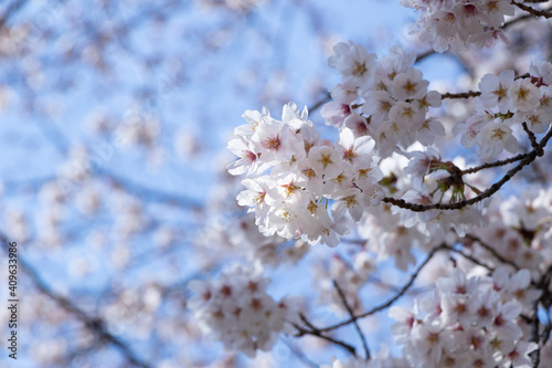 © maruboland, Obraz premium 青空を背景に満開に咲く桜の花