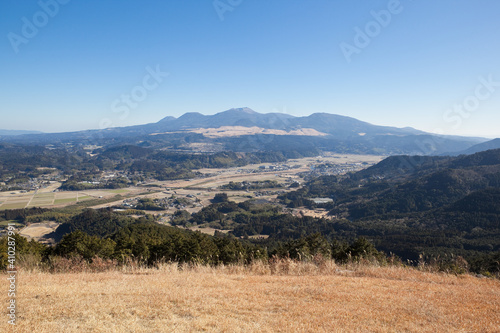 © 田村広充, Fototapeta premium 魚野パラグライダー場から見下ろす湧水町吉松の町並みと霧島連山