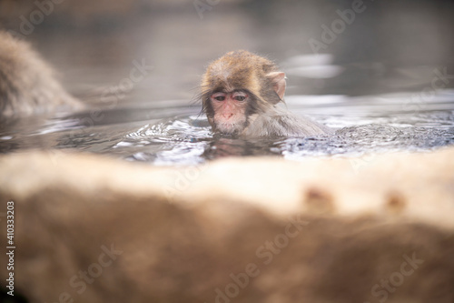 © k, Obraz premium 長野県山ノ内町 地獄谷野猿公苑の温泉に入るニホンザル