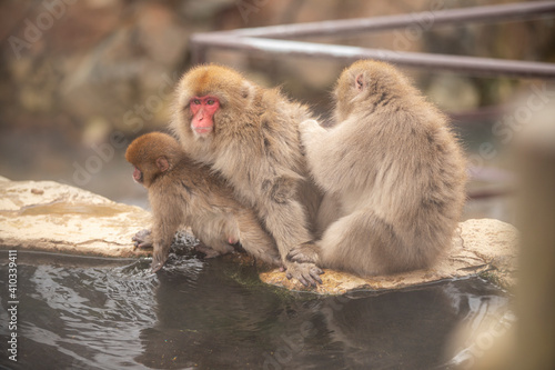 © k, Naklejka premium 長野県山ノ内町 地獄谷野猿公苑の温泉に入るニホンザル