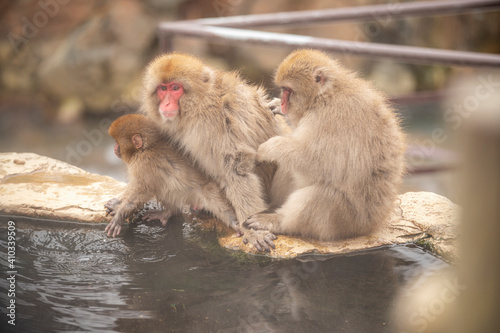 © k, Fototapeta premium 長野県山ノ内町 地獄谷野猿公苑の温泉に入るニホンザル