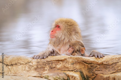 © k, Obraz premium 長野県山ノ内町 地獄谷野猿公苑の温泉に入るニホンザル