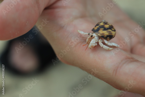 Obraz premium ヤドカリを手に平に乗せる【国内・沖縄】