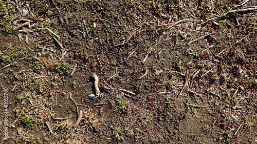 Obraz premium 小枝のある湿気た地面