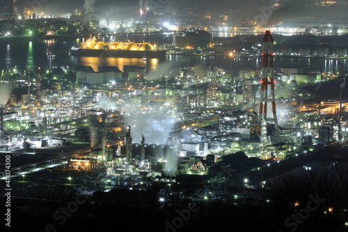 © 仁 藤原, Fototapeta premium 日本の岡山県倉敷市の水島コンビナートの美しい工場夜景