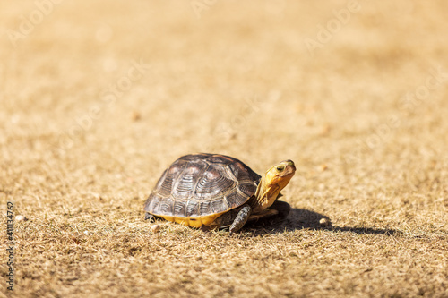 © captainT, Fototapeta premium 庭の芝生の上で日光浴をするペットの亀