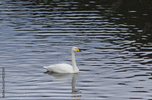 Fototapeta premium 厳しい寒さを避けて越冬で飛来地へと渡ってきた、美しい白い羽毛のオオハクチョウ