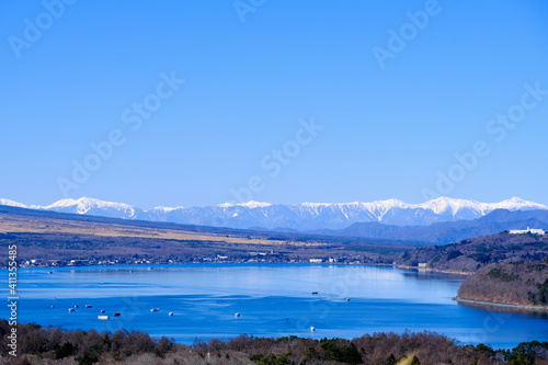Obraz premium 【山梨】山中湖(パノラマ台)から見る南アルプス連峰(冬)
