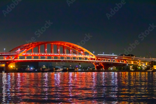 © PMF, Naklejka premium 神戸大橋の夜景 ポートライナー 2021年1月撮影