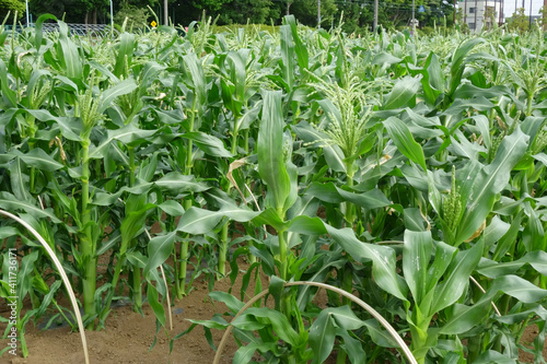 Obraz premium 鬱蒼と茂る真夏日のトウモロコシ畑模様