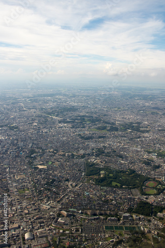 Fototapeta premium 飛行機から見た東京都心風景 縦