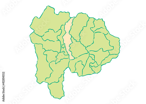 © nextone, Obraz premium 山梨県 甲府市 都道府県別・行政区域マップ