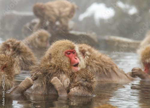 © shun.cap, Obraz premium 温泉に浸かるニホンザル