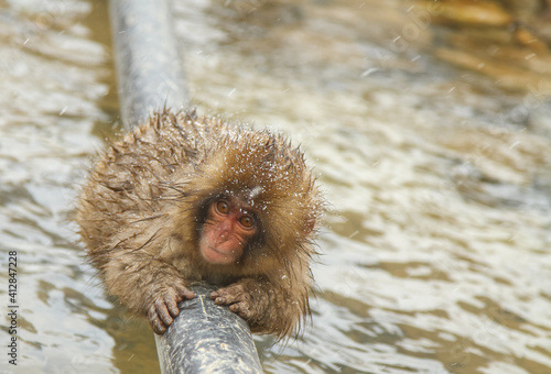 Fototapeta premium パイプを渡るニホンザル