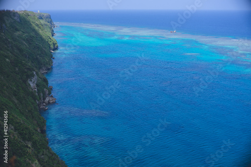 © mm, Fototapeta premium 宮古島の離島伊良部島の断崖青い海を見渡す絶景-三角点