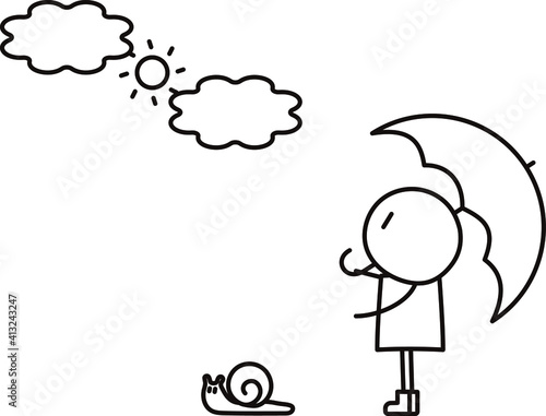 © tobiha_neru, Obraz premium 傘を持ってカタツムリと一緒に梅雨の晴れ間を見上げる人のベクターイラスト性別なし