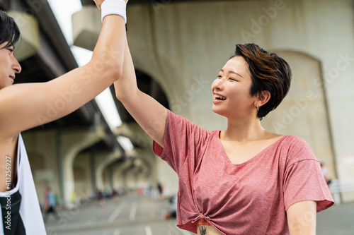 Obraz premium バスケットボールをする男女