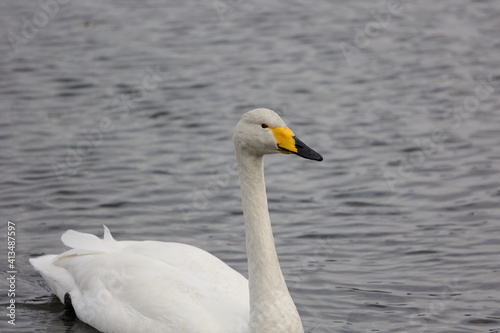Obraz premium 湖を進む一羽の大白鳥