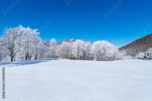 Fototapeta premium 北海道冬の風景 富良野の樹氷