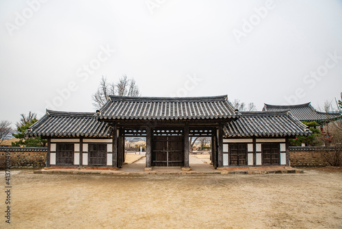 © DaeHyck, Obraz premium 한국의 전통적인 기와집