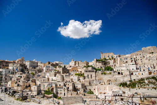Obraz premium 世界遺産南イタリアマテーラの街並みと青空の雲